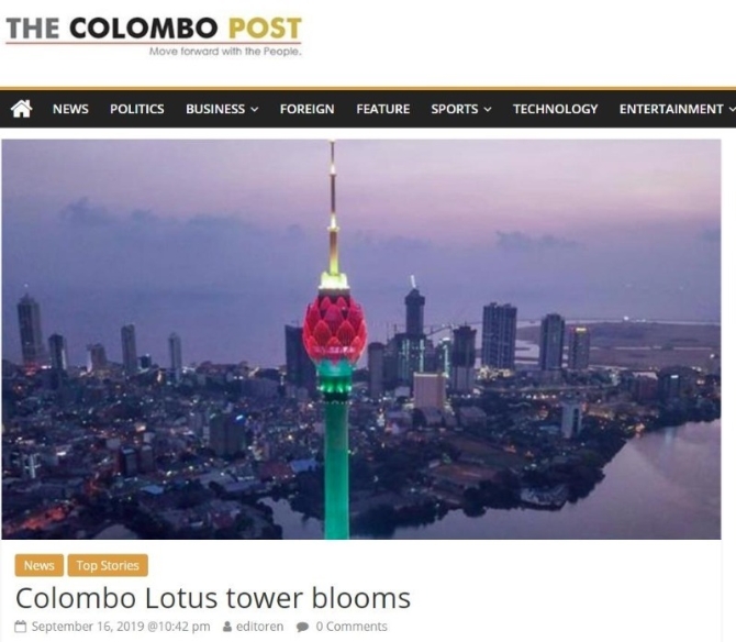文章称,莲花电视塔是集会议、展览、酒店、餐饮、观光、休闲为一体的综合性娱乐中心。它将成为科伦坡重要的旅游景点和国际会议中心,成为科伦坡的城市新地标,是斯里兰卡国家和平、发展与繁荣的象征。