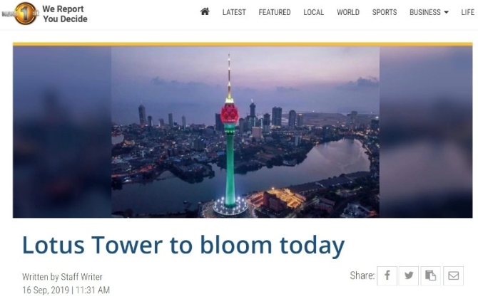 斯里兰卡新闻网newsfirst.lk报道称,莲花塔在科伦坡市中心拔地而起,坐落在风景如画的贝拉湖畔,是南亚最高的塔,也是世界上第19高塔。