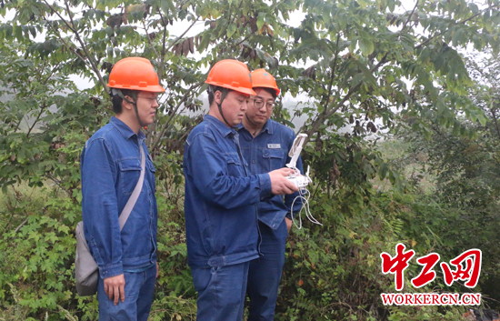周红亮和团队在使用无人机巡检。中工网记者 朱晶晶 摄