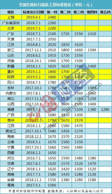 截至目前,上海市以2480元/月的月最低工资标准领跑全国,北京市24元/小时的时薪为全国最高。