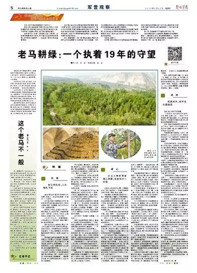 如今,按照马俊德“种植一片,成活一片,稳固一片,开拓一片”的思路,大砂沟苗木的存活率明显提升,许多友邻部队前来参观见学。有人问他种树的“秘诀”,他说:“树就是人,耕绿就是耕心。沙土上种树需要精心浇灌,更重要的是倾注一颗心、一份情。”