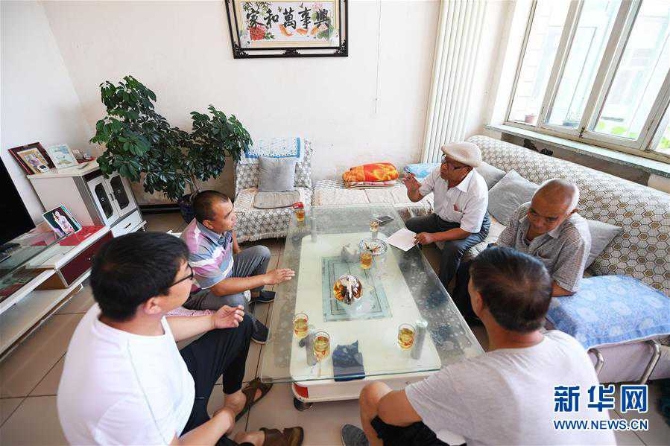 7月13日,在山西省长子县常张乡莫村,调解员郭秀芳(戴帽者)在村民家里调解矛盾。 新华社记者 杨晨光 摄