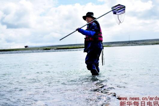 不到两年时间内,科考队员李伟连续第5次进入江源观测高原鱼类特性。每次,他都穿上防水服、扛上渔网与设备,在冰冷河水中捕鱼、采样。他说:“处于水生态系统食物链顶端的鱼类,是水生生物多样性的重要组成部分,对维护江源水生态系统安全起到非常重要的作用。”