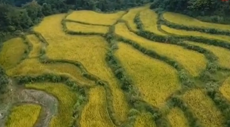 我国第一个国家级森林公园——湖南张家界国家森林公园坐落在湖南张家界市武陵源区。尽管已过中秋,这里依然绿意盎然,三千奇峰挺立山间,森林与岩石完美融合,成为独特石英砂峰林地貌。再过半个月,山间的银杏、水杉、枫树等植物将逐步变黄、变红,装扮整个峰林。现在,最先让人们感受到秋意的就是藏在山间的这片水稻田了,稻子已经金黄。为保护张家界世界自然遗产,当地政府将核心区的村民陆续迁离,让他们在山下再就业。但是,山顶的这片稻田被保留下来了,由村民继续耕种。这片原生态的空中田园也吸引大量游客前来观赏和拍照。
