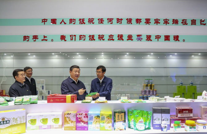 习近平强调“保障粮食安全对中国来说是永恒的课题,任何时候都不能放松”“中国人要把饭碗端在自己手里,而且要装自己的粮食”。