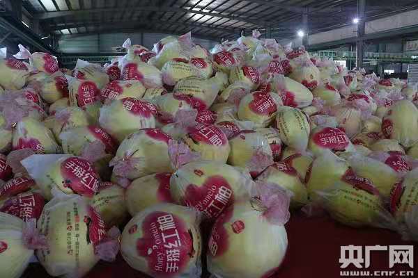 大黄村一合作社内丰收的柚子。(央广网发 夏燕 摄)