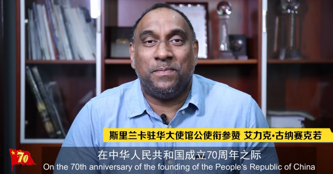 斯里兰卡驻华大使馆公使衔参赞艾力克•古纳赛克若称赞新中国在过去70年中取得的显著成就,使数百万人摆脱了贫困。他祝福新中国生日快乐!