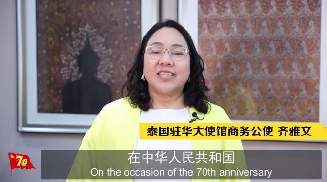 泰国驻华大使馆商务公使齐雅文希望借此佳节,祝福中国在未来更加繁荣昌盛。