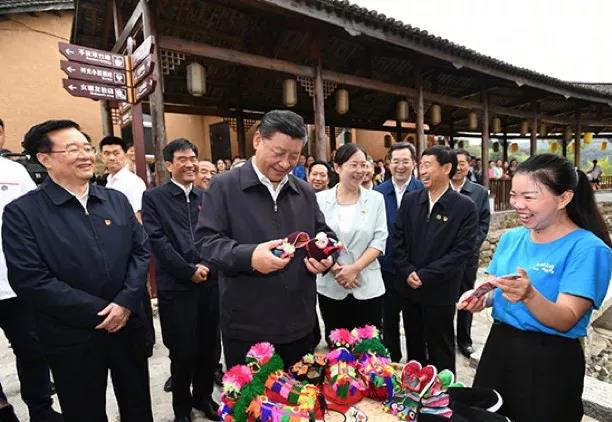 习近平总书记沿着村间小路,走进一家家创客小店,询问手工艺品销路、民宿入住率、小卖部经营等状况。他指出,依托丰富的红色文化资源和绿色生态资源发展乡村旅游,搞活了农村经济,是振兴乡村的好做法。
