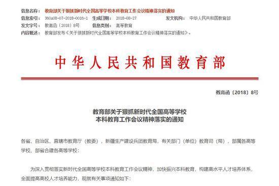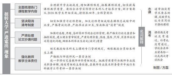 同年,教育部下发《关于狠抓新时代全国高等学校本科教育工作会议精神落实的通知》,再次强调各高校要全面梳理各门课程的教学内容,淘汰“水课”,打造“金课”,严把毕业出口关,坚决取消“清考”制度。