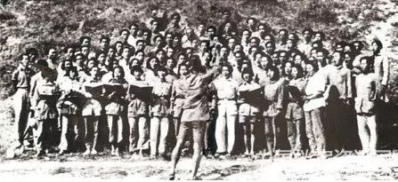 1939年《黄河大合唱》公演前,冼星海指挥延安“鲁艺”合唱团排练《黄河大合唱》时的情景(来源:中国档案报)