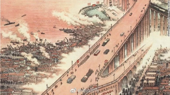 图/1968年12月29日,南京长江大桥公路桥通车。这标志着大桥全线正式通车。