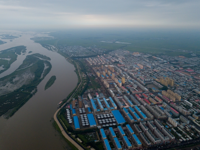 松花江畔的绥滨县城。 澎湃新闻记者 朱伟辉/摄