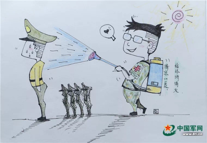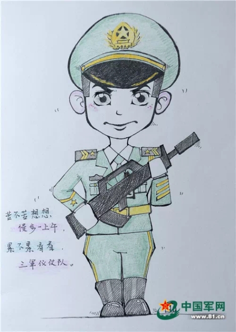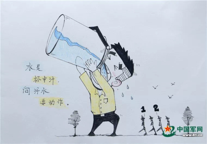 前不久,听说记者要来采访他,杭瑞凯创作热情更高了。近段时间以来,他利用业余时间又连续创作了“清凉一夏”“向汗水要动作”“三军仪仗队”等数十幅风趣幽默、主题鲜明的漫画。他说:“笔墨释放的是一种心情,记录的是官兵生活,追求的是物我两忘、天人合一,只要大家喜欢,就会笔耕不辍。”