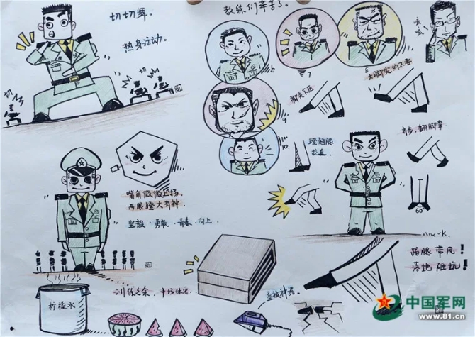 漫画出炉后,看着战友们争先恐后地传看,并开心地讨论着画面上的内容,杭瑞凯定下目标:用画笔记录官兵阅兵训练的酸甜苦辣,争取阅兵任务结束时出版一本《阅兵场漫画手册》。之后,他一有空闲,就拿出画板和画笔,描绘阅兵训练和日常生活中令人难忘的每一个瞬间。