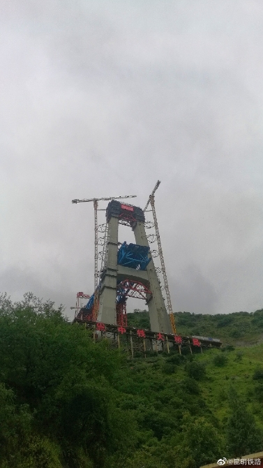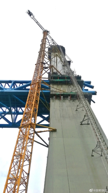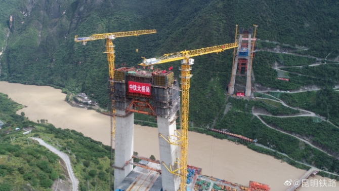 丽香铁路金沙江特大桥主塔封顶