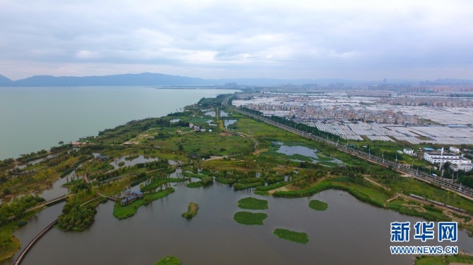 斗南湿地公园位于昆明市呈贡区,一期面积615亩,于2014年5月动工建设,2016年1月建成并正式对外开放。斗南湿地的建设,以滇池治理“四退三还”工作为基础,利用上游污水处理厂的尾水作为湿地系统的水源,通过地形整理、疏通水系、整合湿地布水系统,重新连接了陆地—湿地—滇池生态系统,促进了滇池水体和湿地水体的充分交换。同时,结合湿地沉水、挺水植物的恢复,有效净化该区域内的水体,充分发挥了湿地生态功能。(新华网 赵普凡/摄 念新洪/文)