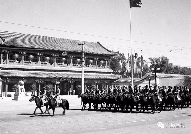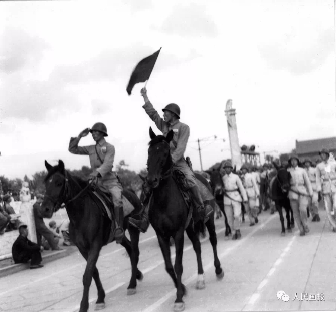 这次受阅部队中第一次出现了伞兵方队。而中国人民解放军骑兵部队,则是最后一次接受检阅。此次阅兵,受阅部队武器装备基本是苏式的。这是我军武器装备的一大进步。(摄影:张瑞华)