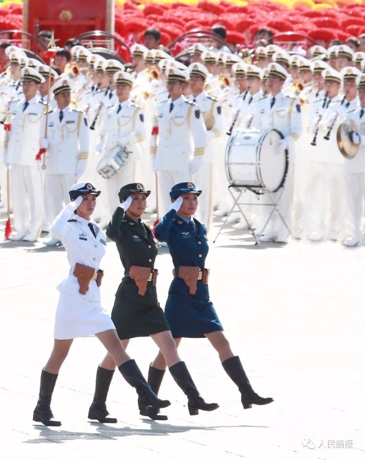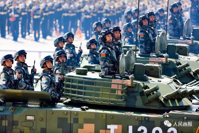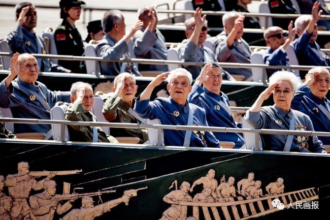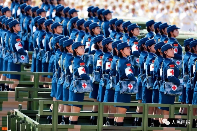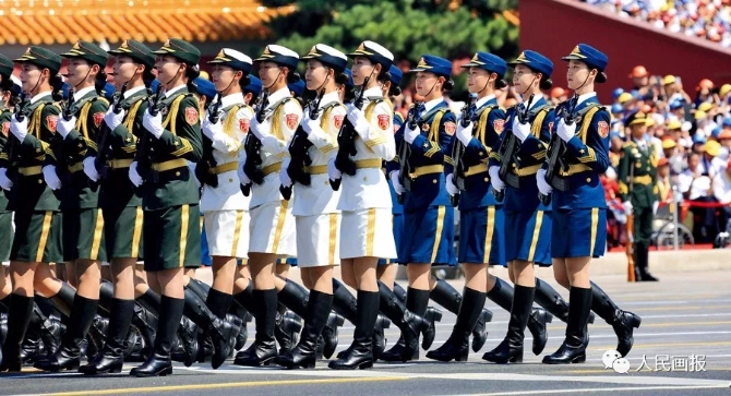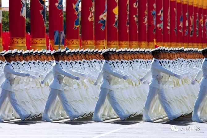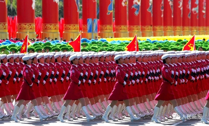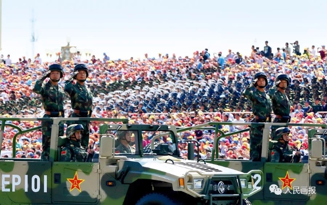 受阅部队由前两次的海军士兵和军校学员,换成了正在军事学院受训的身经百战、功勋卓著的高级军官。本次阅兵首次出现了民兵方队,他们是华北老解放区战斗英雄和工作模范。(资料图)