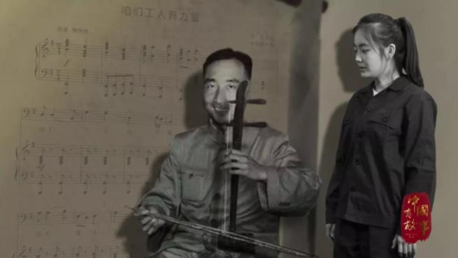 他随即拿起身边的二胡,胡弦的吱吱呀呀声正是《咱们工人有力量》最初的样子。