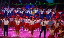 “奋斗吧中华儿女,新时代的步伐不可阻挡。奋斗吧中华儿女,新时代的前程无比辉煌……”晚会在大型歌舞《奋斗吧 中华儿女》中落下帷幕。大会堂内灯光璀璨,歌声和掌声汇成欢乐的海洋,气氛被推向高潮。