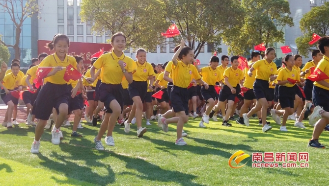 少年智则国智,少年强则国强,少年进步则国进步,少年雄于地球则国雄于地球。紧接着,南昌二中的学生们个个精神抖擞,挥舞着手中的小红旗,饱含深情地齐唱《歌唱祖国》,用最真挚的情感和最质朴的声音唱出了南昌的幸福味儿,更唱出了对祖国母亲的一片深情。最后,现场全体人员共同高呼:“祖国我爱你!祝我们伟大的祖国繁荣昌盛!”
