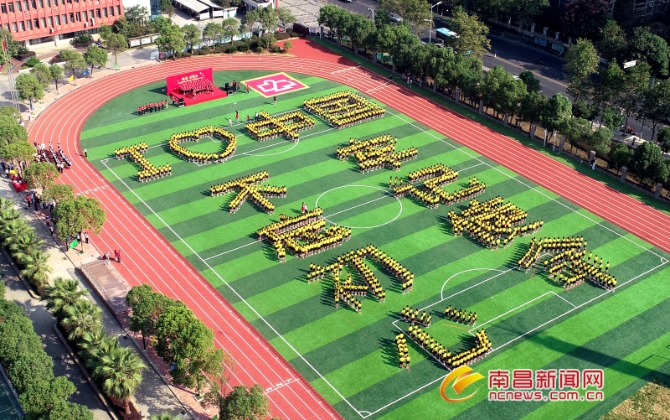 秋风送爽,彩旗飘飘,神州大地,欢歌如潮。为弘扬爱国主义精神,营造礼赞新中国、奋斗新时代的浓厚氛围,9月29日,“祖国,我爱你”千人齐唱国歌庆祝新中国成立70周年活动在南昌二中举行,2019名可爱的学生们分成12个方阵在操场上拼出“我爱中国”“不忘初心、牢记使命”的字样,高唱爱国最强音,向祖国深情告白。