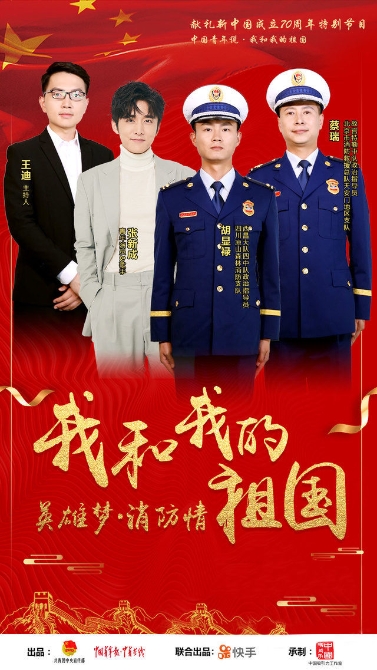 随着歌曲步入高潮,消防员们来了一波快闪,他们从消防车后走出来,与嘉宾们同唱,共同为祖国献礼。