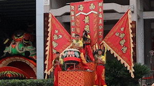 据叶师傅介绍,这些狮子的脸都是用三国中的人物来刻画的:黄狮温和,似刘备;红狮凝重,似关羽;黑狮凶恶,似张飞。三国时期人物的故事,在这些狮子身上,被重新演绎。