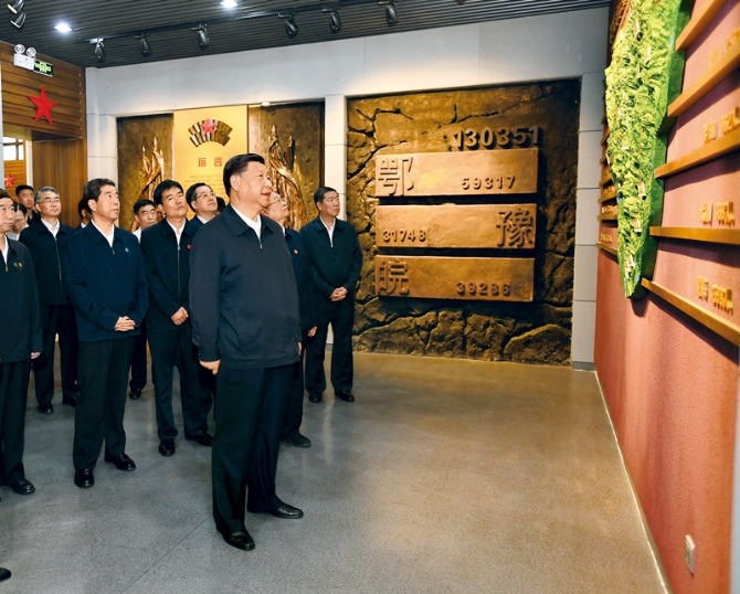 2019年9月16日至18日,中共中央总书记、国家主席、中央军委主席习近平在河南考察。这是16日下午,习近平来到位于信阳市新县的鄂豫皖苏区首府烈士陵园,瞻仰革命烈士纪念堂。 新华社记者 谢环驰/摄