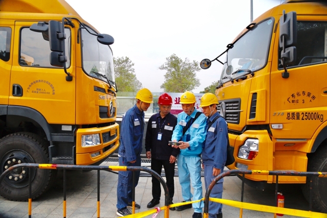 10月1日上午,南方电网广东东莞城区供电局保电工作人员检查完设备后,在工作现场用手机观看直播。图片由南方电网广东东莞城区供电局提供