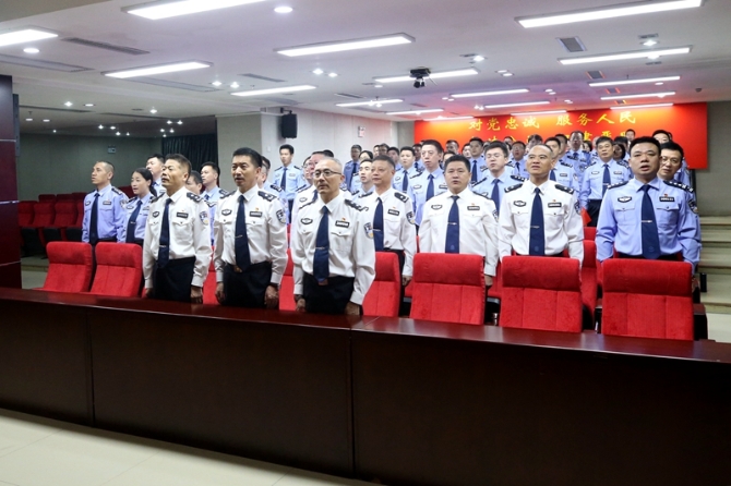 深圳边检总站民警庄严肃立,合唱国歌。图片由深圳边检总站提供