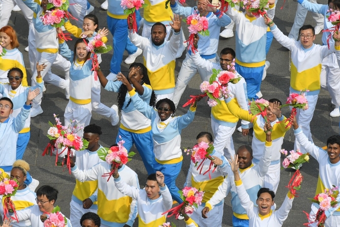 来自乌干达的Maxwell在中国生活有一年半了,他正在对外经贸大学攻读本科学位。他也参加了群众游行中的“人类命运共同体”方阵,对此感触深切。他说:“这是我第一次见证如此的团结,无论你来自世界的哪里都能参与其中。参与这次活动非常值得。我们很感恩也很荣幸能够参与到群众游行中,这次游行真的太棒了,很美,也很成功。我很高兴能成为其中一份子。”