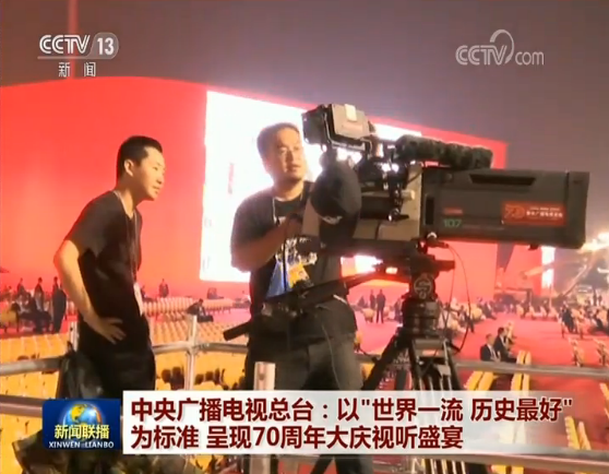 记录国庆盛典,中央广播电视总台搭建了由1个总系统、6个分系统共91个机位,以及34个微型摄像机所组成的直播系统,加上当晚广场联欢直播的70多个专用机位,成为新中国电视史上规模最大、投入最多、设备最先进、技术最复杂的一个直播系统,并首次实现全流程、全要素4K+5G超高清直播,在电视端、新媒体端,以及全国十大电影院线同步推出,刷新了多项纪录。