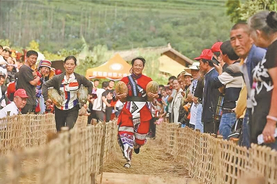 东川区丰收节开展了祭祀谷神仪式、撵鸭子比赛、徒手搓玉米比赛等丰富多彩的活动。(云南日报 记者熊明)