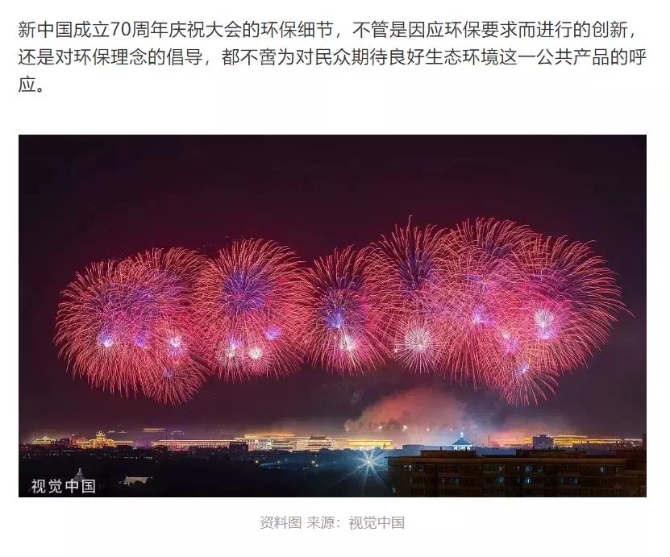 不只是焰火表演,阅兵仪式和联欢晚会上,环保细节可谓处处可见。