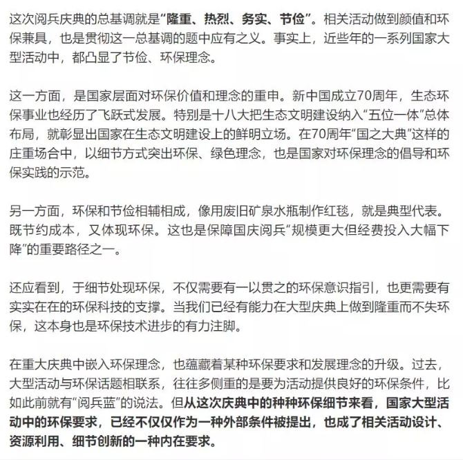 “国之大典”嵌入环保细节 也是发展理念升级