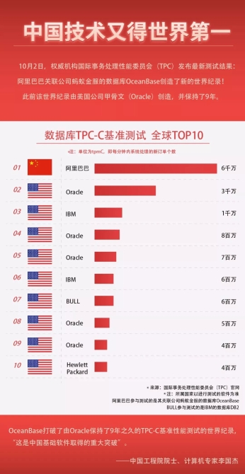 过去数十年,TPC-C一直是海外传统数据库厂商竞技的舞台,而OceanBase是登上TPC-C排行榜前列、由中国公司完全自主研发的第一款大型数据库产品。
