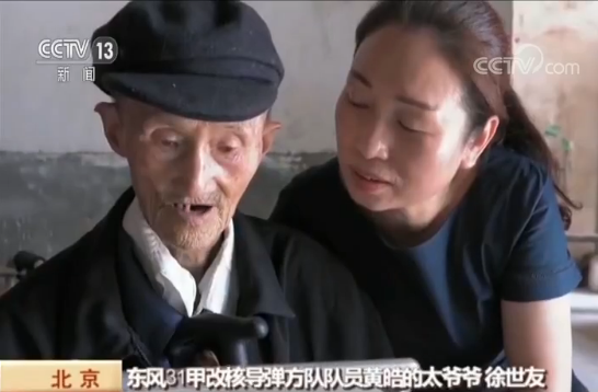 如今,太爷爷年事已高、行动不便,黄皓又因为任务在身无法回家探望。为了让太爷爷了解黄皓近况,报道团队派出记者来到黄皓安徽老家,把黄皓参加训练的视频带给太爷爷看。