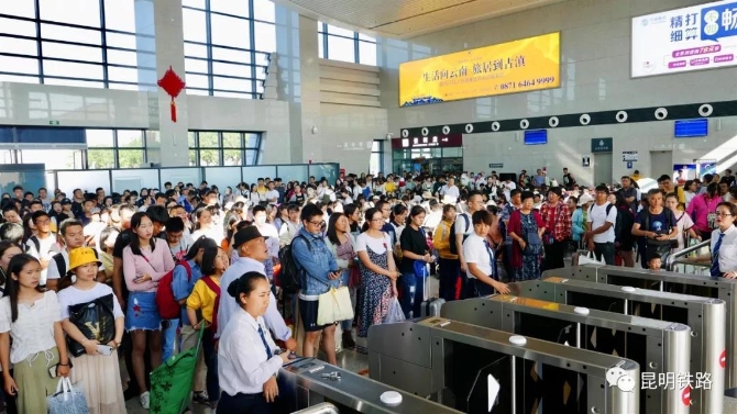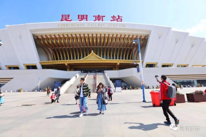 昆明站、昆明南站作为连接云南与各省、市之间的重要车站,为方便从旅游目的地不能直达的旅客无缝返程,车站在每一趟大理、丽江、普者黑、弥勒等旅游热点城市至昆明的动车到达时,安排工作人员引导旅客到候车大厅候乘。同时,还在出站口设置了民航、公路中转换乘办理中心,让旅客享受无缝换乘带来的便利。