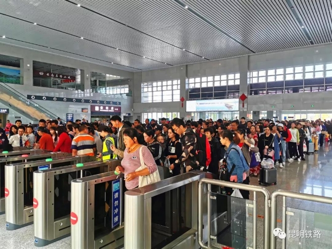 10月6日,随着国庆假期即将结束铁路迎来客流返程高峰。今天主要以中长途返程客流为主,预计发送旅客28万人次以上,昆明局集团公司采取高峰图运行共开行列车384列,其中加开列车38列,重联动车组列车97列。