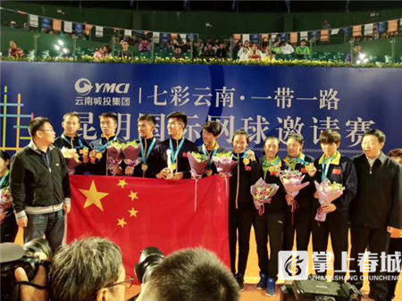 2018“七彩云南 一带一路”昆明国际网球邀请赛郑洁为队伍颁奖。