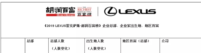 来源:《2019 LEXUS雷克萨斯·胡润百富榜》