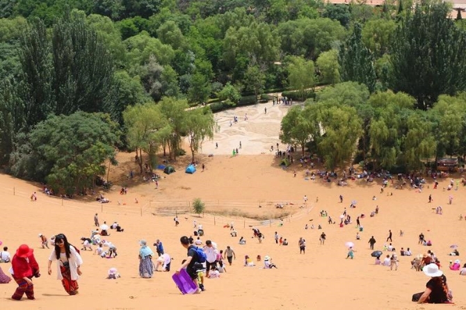 “西北美景九十九,最美不过沙坡头。”北京来的一位游客突然的一句感慨,道出了沙坡头的非同一般。显然,沙坡头担当得起这样一句赞叹。