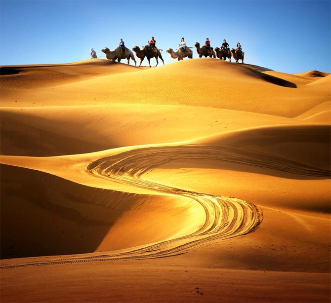 当地的百姓曾经为了抗击风沙奋斗奉献,如今跟着沙坡头沾光致富。许许多多的农户,买来骆驼,在沙漠里驮着游客体验沙漠风情。当地民谚:驴是鬼,摔下来不是胳膊就是腿;骆驼是神,摔下来不疼。骆驼不止是沙漠之舟,更是沙漠神物。当年西北人用骆驼组成商队,走西口,闯关东,北走平津,南下广州。驼铃声声,不止是因为骆驼行走稳健,能负重载物,更是因为骆驼在茫茫戈壁滩里行走,一蹄子就能踢死一只恶狼,可以保护这些讨生活的人们,更是因为骆驼貌似笨重,跑起来寻常汽车追不上。游客骑在骆驼上,腚下平稳,不用担心安全,极目远眺,大漠浩瀚,豪气顿生。转一圈回来,再合个影。放到朋友圈里,我们也是大漠客,羡煞多少人。一头骆驼一万多,一年载客收入四五万。这笔买卖,值!谁还说咱沙坡头人笨?聪明着呢。