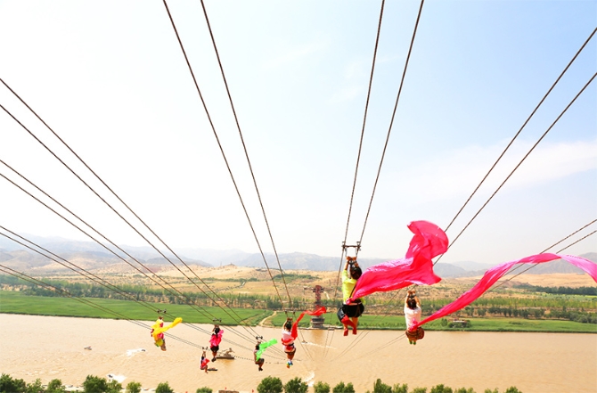 更有聪明人,帮助景区开发出了新项目。坐高空缆车,快速从黄河上滑过。脚下是看似缓慢实则凶险的黄河水,游客战战兢兢方敢上缆车,缆车启动,黄河上空就是一阵阵惊吓刺激的尖叫声。这种高空缆车项目,各地景区都有,谈不上出奇。聪明的沙坡头人给起了个好名字:飞黄腾达。飞越黄河,抵达腾格里。字字扣题,胜在好意头。
