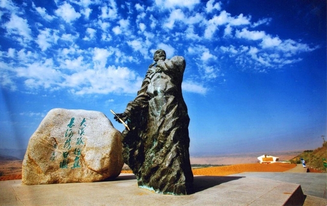 景区里专门为王维塑了像,淳朴的西北人,用这种方式感谢大诗人神来之笔写出了沙坡头的景致,写出了西北边关气象边关豪情。塑像上,王维手持一支大毛笔。憨直的西北人希望诗人的才气,能给子弟们增添一些文气。其实也暗藏了一些小骄傲。王维的诗,被王国维称为“千古壮观”,但沙坡头的景观,王维的诗还没写完,没写尽。沙坡头的景致比诗人的作品更美。