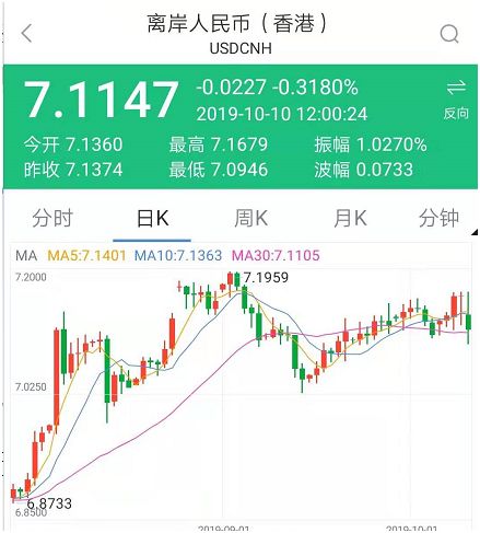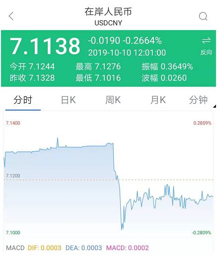 令人意外的是,短短几小时小时后,离岸人民币却出现了短线飙升行情,日内反弹超700个基点,汇率升破7.10关口。与此同时,贸易摩擦出现了一些缓和的迹象。