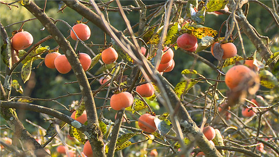 近日,记者也慕名来到绿丰果园,才走进园里就看到一棵棵柿子树上缀满成熟的果实,又大又红的柿子在密密麻麻的枝桠间闪烁,仿佛挂满了红红的小灯笼。成熟的柿子吸引了不少游客前来购买和采摘,而穿行在柿子林中,浓郁的香气扑鼻而来,令人心旷神怡,游客们对这里的柿子的味道也是赞不绝口。