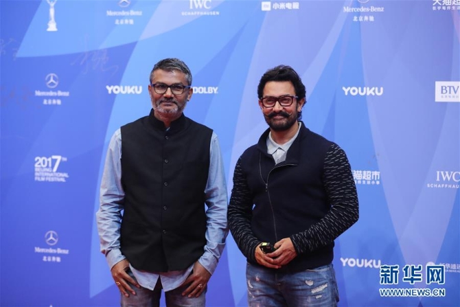 这是电影《摔跤吧!爸爸》剧组成员亮相第七届北京国际电影节开幕红毯(2017年4月16日摄)。 新华社记者 殷刚/摄